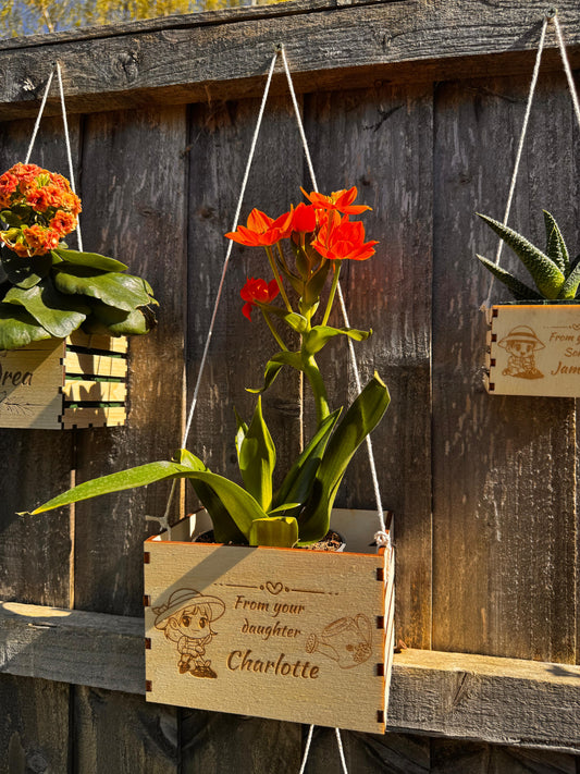 Custom Engraved Wooden Flower Pot