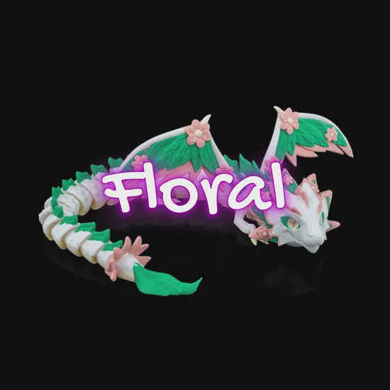 The Floral Dragon features delicate floral patterns with an articulated body, offering a dynamic and eye-catching piece that adds beauty and magic to any space.