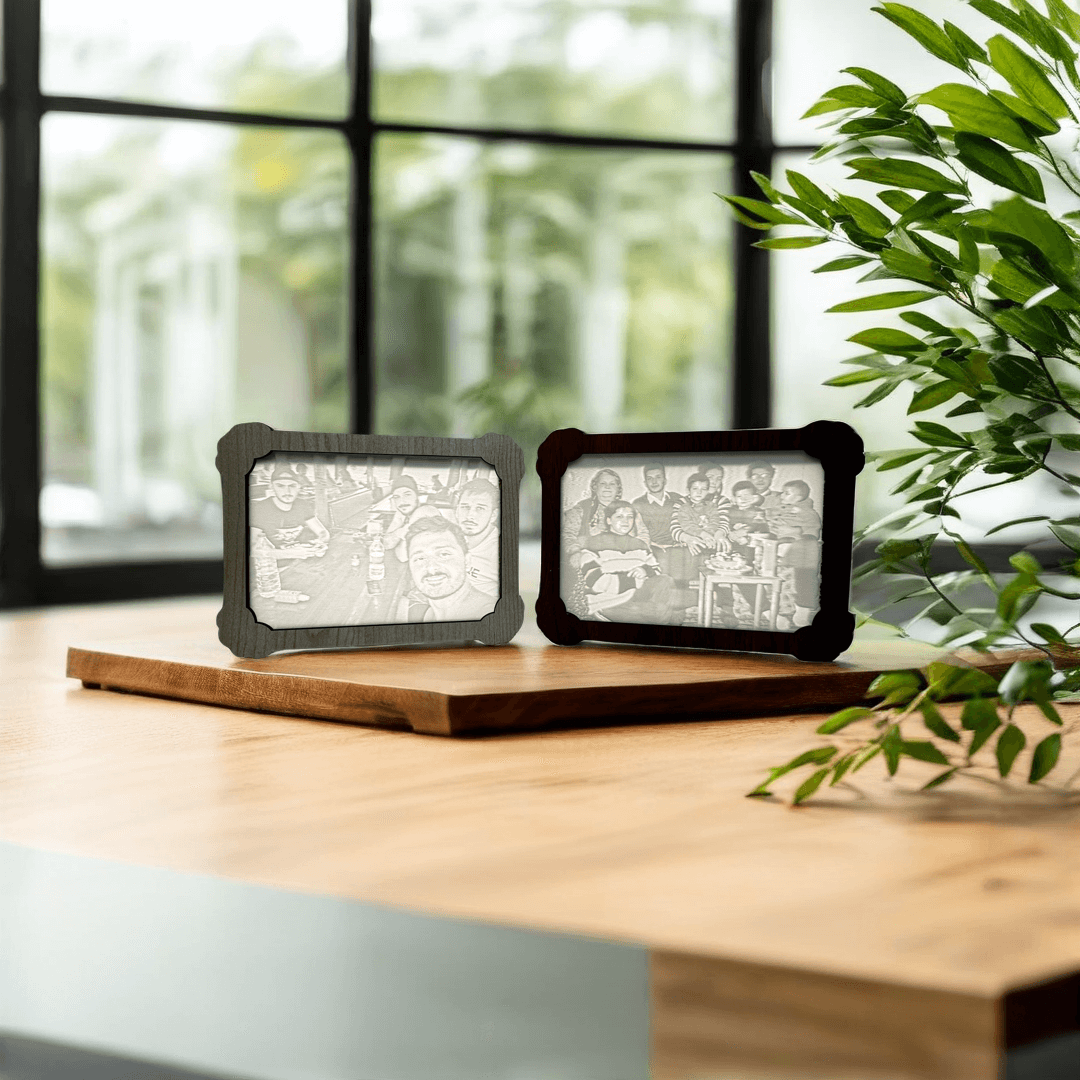 Turn your home into a glowing memory filled with atmosphere. This medium-sized USB-powered lithophane lamp features unique 3D-printed panels that come to life when illuminated. The natural wooden frame offers a timeless, warm look and is available in four different colors, making it easy to match any interior style.