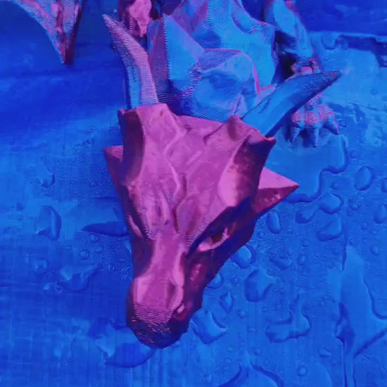 Step into a world of magic with the Mystical Dragon! This stunning 3D-printed dragon glows in shimmering blue and purple hues, while its large, intricately designed wings give it a truly mystical presence. More than just a decoration, it’s a fantasy experience brought to life in your home or office!